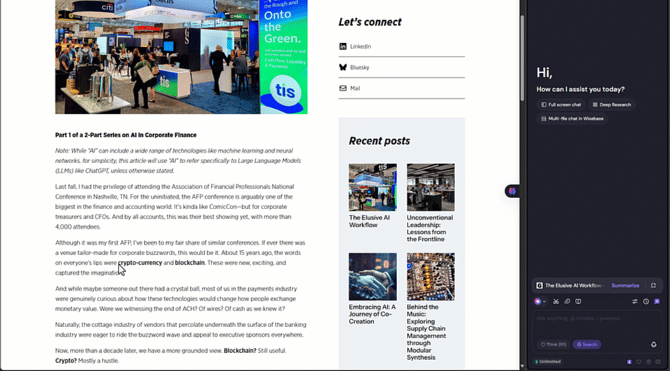 These examples aren’t meant to be magic bullets—and they’re not trying to replace the role of a treasury analyst or finance lead. But they do show that AI workflows don’t have to be huge to be meaningful.